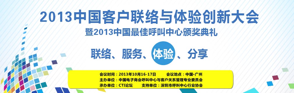 2013中國客戶聯(lián)絡與體驗創(chuàng)新大會暨2013中國最佳呼叫中心頒獎典禮 火熱報名中!