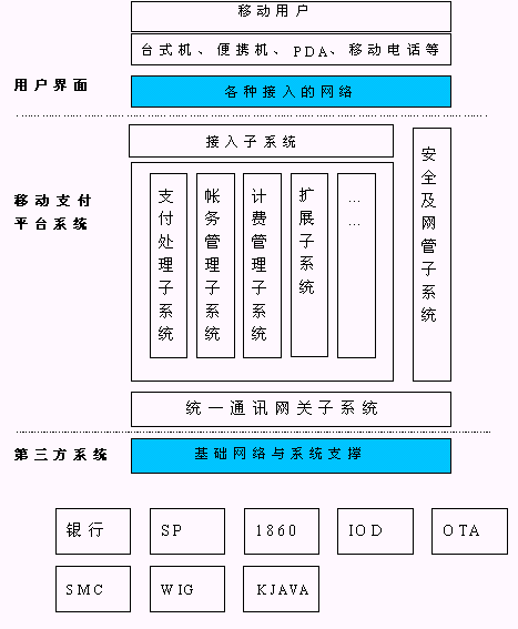 3、 移動(dòng)支付平臺可以支持多種支付方式,如信用卡、儲(chǔ)值卡、小額支付等;平臺本身具備一小額儲(chǔ)值卡平臺,用于移動(dòng)業(yè)務(wù)和ICP業(yè)務(wù)支付等;