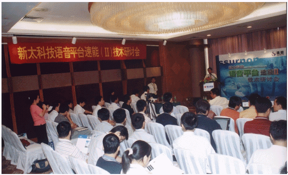 7月23日,新太科技在廣州花園酒店舉行"語音平臺(tái)速能II技術(shù)研討會(huì)"。新太科技執(zhí)行總裁梁平、副總裁何健明,開發(fā)中心副經(jīng)理張少文,營(yíng)銷中心國(guó)際業(yè)務(wù)部副總經(jīng)理馬任遠(yuǎn)、產(chǎn)品經(jīng)理黃偉,新太科技合作伙伴Intel公司通訊產(chǎn)品業(yè)務(wù)部戰(zhàn)略客戶經(jīng)理林競(jìng)宇,新太語音平臺(tái)速能產(chǎn)品核心代理商--廣州納特威科技公司總經(jīng)理黃淡輝,渠道總代理商--深圳意科特實(shí)業(yè)有限公司總經(jīng)理李面換等到會(huì)并作主題發(fā)言!吨袊(guó)計(jì)算機(jī)報(bào)》、《計(jì)算機(jī)世界》、《SP計(jì)算機(jī)產(chǎn)品與流通》、IT168共四家專業(yè)媒體記者到會(huì)采訪。
