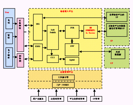 新太科技在原有IPS平臺技術(shù)基礎(chǔ)上,IMSP綜合多業(yè)務(wù)平臺是SUNTEK公司推出的增值業(yè)務(wù)網(wǎng)絡(luò)整體解決方案。它以開放式、模塊化的設(shè)計思想,融合多種技術(shù)(CTI技術(shù)、智能網(wǎng)、NGN等)的技術(shù)特性,研發(fā)的IMSP綜合多業(yè)務(wù)平臺(IMSP, Integration Multi Service Platform),在同一個平臺上靈活的提供多種電信增值業(yè)務(wù),實(shí)現(xiàn)業(yè)務(wù)迅速搭建,并能實(shí)現(xiàn)業(yè)務(wù)和系統(tǒng)的統(tǒng)一管理和實(shí)時控制,提供實(shí)現(xiàn)運(yùn)營管理系統(tǒng)(SPOA),滿足語音增值業(yè)務(wù)市場需求,順應(yīng)了融合通信技術(shù)發(fā)展的潮流。