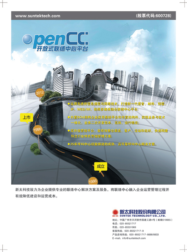 目前,新太科技的業(yè)務(wù)集中在現(xiàn)代信息服務(wù)業(yè)的三個(gè)主要領(lǐng)域發(fā)展,包括電信增值領(lǐng)域、呼叫中心領(lǐng)域和監(jiān)控安防領(lǐng)域、IT服務(wù)領(lǐng)域(包括電信平臺(tái)維保業(yè)務(wù)、云計(jì)算產(chǎn)品集成服務(wù)、軟件外包及一站式供應(yīng)鏈管理服務(wù)),并在過去的兩年中得到了全面提升和快速發(fā)展。近期承接了一系列國(guó)家級(jí)電信增值業(yè)務(wù)平臺(tái)項(xiàng)目、廣州亞運(yùn)會(huì)工程項(xiàng)目、廣州市及番禺區(qū)平安城市視頻監(jiān)控與安防系統(tǒng)項(xiàng)目。