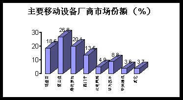 (3)市場趨勢及預(yù)測: 2001年移動網(wǎng)絡(luò)設(shè)備市場預(yù)計(jì)總體保持快速增長,在GSM領(lǐng)域,中國移動25城市GPRS實(shí)驗(yàn)網(wǎng)的開通,對移動互聯(lián)將是實(shí)質(zhì)性的推動,WAP熱炒冷賣的局面會有所改變。各大設(shè)備廠商受此影響將沉浮巨大,愛立信、諾基亞、摩托羅拉、華為技術(shù)等公司將順勢擴(kuò)大市場份額,市場集中度進(jìn)一步提高。