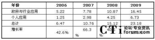 如圖1所示,F(xiàn)rost & Sullivan認(rèn)為,由于個人應(yīng)用領(lǐng)域的商業(yè)模式還未成熟,產(chǎn)業(yè)鏈整合仍在進(jìn)行中,目前移動位置服務(wù)應(yīng)用仍然以政府和企業(yè)應(yīng)用為主。如圖4所示,2009年個人應(yīng)用市場規(guī)模為6.73億元,而政府與行業(yè)應(yīng)用市場達(dá)到16.45億元,兩者總計達(dá)23.18億元,同比去年增長了53.3%。