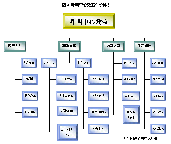 根據(jù)年度重點(diǎn)工作及目標(biāo),我們就可以設(shè)計(jì)關(guān)鍵措施來使其實(shí)現(xiàn)。通常一項(xiàng)關(guān)鍵措施可以有助于幾個(gè)目標(biāo)的達(dá)成。如建立培訓(xùn)體系,可以使得在崗培訓(xùn)、上崗培訓(xùn)、多技能訓(xùn)練以及崗位技能達(dá)標(biāo)率有所提升,而體現(xiàn)在業(yè)務(wù)上的效果則是服務(wù)質(zhì)量的提升、呼出營銷收入增加和客戶挽留率提高。