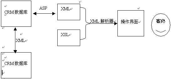包括客戶資料,銷售報表等相關的客服信息都存儲在數(shù)據(jù)庫中,通過ASP應用程序取出需要的數(shù)據(jù)生成符合條件的XML文檔,再通過安裝在服務器端的XML解析器按照預先設定的排版樣式XSL解析XML文檔,最后生成符合條件的HTML格式的CRM操作界面呈現(xiàn)在客戶面前?蛻魯(shù)據(jù)可能來自不同的數(shù)據(jù)庫,并且都有各自不同的復雜格式。但客戶與這些數(shù)據(jù)庫間只通過一種標準語言進行交互,那就是XML。由于XML的自定義性及可擴展性,它足以表達各種類型的數(shù)據(jù)?蛻羰盏綌(shù)據(jù)后可以進行處理,也可以在不同數(shù)據(jù)庫間進行傳遞。