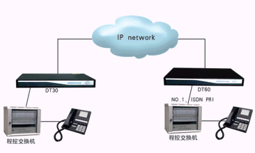 PRI信令;基于H.323協(xié)議,可以與主流廠商網(wǎng)守配合組網(wǎng);一個10/100base-T端口上行連接到IP網(wǎng),提供VOIP網(wǎng)絡(luò)到PSTN、程控交換機(jī)間的連接?膳c程控交換機(jī)連接,可以基于3.5G、5.8G無線的VOIP接入,可以采用端到端方式連接程控交換機(jī),并支持用戶選擇長話運(yùn)營商。