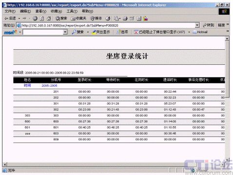 5.座席工作情況:包括座席來(lái)話統(tǒng)計(jì),座席外撥匯總統(tǒng)計(jì)和座席登錄統(tǒng)計(jì)多個(gè)報(bào)表。能夠在指定的時(shí)間段內(nèi),分別的對(duì)所有座席的工作情況進(jìn)行統(tǒng)計(jì)匯總,無(wú)需單個(gè)查找,大量節(jié)約統(tǒng)計(jì)工作時(shí)間,提供辦公效率。該項(xiàng)統(tǒng)計(jì)報(bào)表統(tǒng)計(jì)內(nèi)容豐富、詳細(xì),包括通話時(shí)長(zhǎng)、來(lái)話數(shù)量等關(guān)鍵統(tǒng)計(jì)字段,保證統(tǒng)計(jì)內(nèi)容的全面性、有效性。