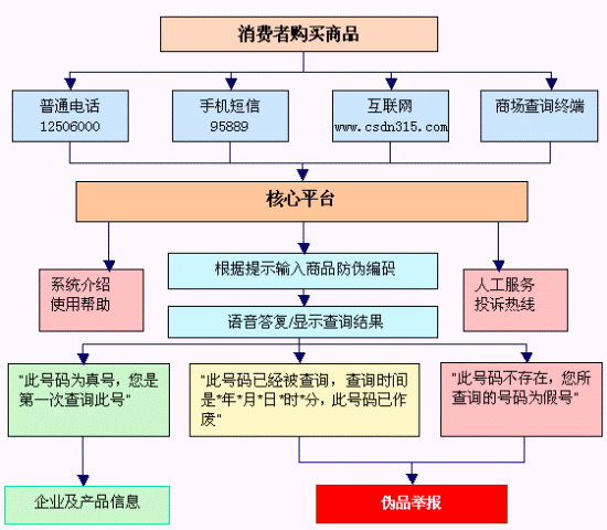 在國家計委和國務院信息辦的直接領(lǐng)導下,以及在質(zhì)檢、工商、醫(yī)藥等職能部門的配合下,國家信息中心正式啟動國家級防偽工程 -- 數(shù)碼防偽公共服務系統(tǒng)建設(shè)。該系統(tǒng)綜合利用了當前最先進的技術(shù),集CTI技術(shù)、語音技術(shù)、網(wǎng)絡(luò)通信技術(shù)、計算機加密技術(shù)、以及大型數(shù)據(jù)庫技術(shù)于一體,服務于產(chǎn)品防偽和打假,支持企業(yè)采用現(xiàn)代信息技術(shù)開展防偽工作,提高防偽效能,并為廣大消費者提供安全和質(zhì)量的保障。