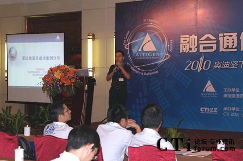 與會(huì)期間,奧迪堅(jiān)大區(qū)銷售總監(jiān)廖澄和奧迪堅(jiān)技術(shù)總監(jiān)強(qiáng)雄飛發(fā)表了“下一代融合型通信平臺(tái)介紹”、“ 下一代呼叫中心解決方案介紹”以及“奧迪堅(jiān)全系列自主融合通信產(chǎn)品介紹”主題演講。