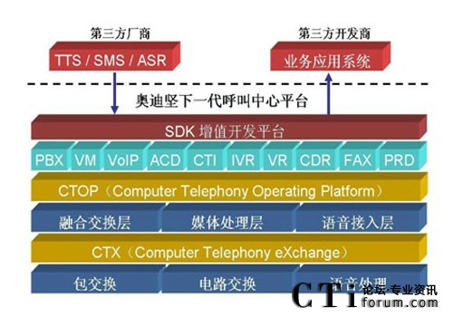 傳統(tǒng)型的語音交換機(jī)在設(shè)計(jì)之初,只側(cè)重于語音交換能力,并沒有考慮到呼 叫中心這種需要集成數(shù)據(jù)的應(yīng)用模式,因此基于傳統(tǒng) TDM 交換機(jī)的呼叫中心系 統(tǒng)都需要外掛 CTI 服務(wù)器,至于基于語音板卡、傳統(tǒng)型 IP-PBX 或軟交換的呼叫 中心系統(tǒng)也不例外。而奧迪堅(jiān) IP 呼叫中心平臺在設(shè)計(jì)伊始,就專門針對于呼叫 中心的應(yīng)用,在底層已經(jīng)將 PBX、CTI、IVR 等核心功能緊密地融合在一起了, 在系統(tǒng)集成度方面遠(yuǎn)遠(yuǎn)優(yōu)于傳統(tǒng) TDM 交換機(jī)、語音板卡、傳統(tǒng)型 IP-PBX 或軟 交換的解決方案。