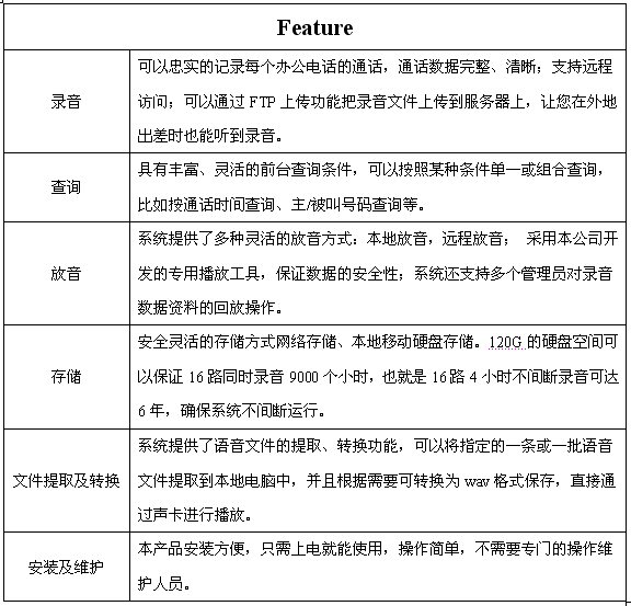 1. 錄音服務(wù)器采用嵌入式(Embedded)Linux操作系統(tǒng),高性能壓縮芯片,語音文件僅為1KB/S,綜合性價比突出;