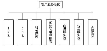 客戶服務(wù)中心系統(tǒng)由智能排隊(duì)機(jī)(含接入服務(wù)器)、核心服務(wù)器CTI、交互式語音應(yīng)答系統(tǒng)IVR、語音傳真服務(wù)器、業(yè)務(wù)服務(wù)器、工作流服務(wù)器、數(shù)據(jù)庫服務(wù)器、Internet/Intranet服務(wù)器、人工座席、尋呼機(jī)接口、手機(jī)短消息接口等組成。