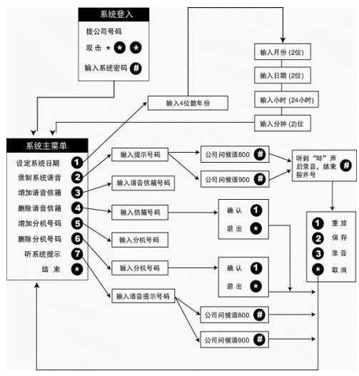 NBX3000系統(tǒng)語(yǔ)音信箱電話操作流程圖