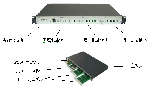 見上圖,DAS30為模塊化插板結構,由主機、1塊MCU主控板、1或2塊接口板、和1塊電源板組成。主機有4個插槽,從左到右分別是電源板、MCU主控板、接口板插槽1、接口板插槽2。