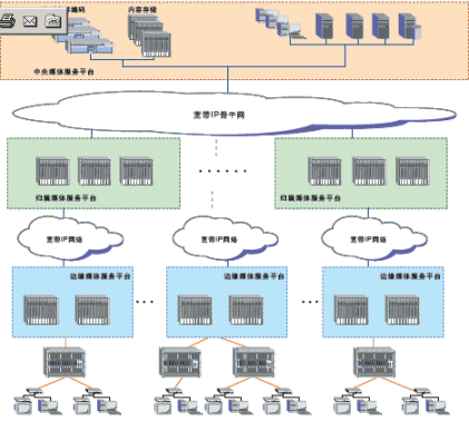 奔流(RollingStream)系統(tǒng)可以支持百萬級別的用戶規(guī)模,支持3級和多級部署架構(gòu)。包括中心節(jié)點(diǎn)(CMS)、區(qū)域匯聚節(jié)點(diǎn)(HMS)以及邊緣服務(wù)節(jié)點(diǎn)(EMS)。奔流(RollingStream)系統(tǒng)對于寬帶IP網(wǎng)絡(luò)的容忍度是很高的,可以支持各種網(wǎng)絡(luò)承載形式,也可支持各種接入方式。如LAN接入、DSLAM接入、GEPON接入。對于IPTV系統(tǒng),可建設(shè)專網(wǎng),CMS和HMS、EMS直接相連,也可以旁掛在城域網(wǎng)上。另外,無論P(yáng)PPoE還是DHCP上網(wǎng)方式都可以支持。