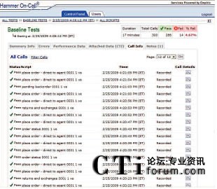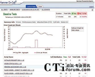 Hammer On-Call IVR測(cè)試服務(wù)的基礎(chǔ)測(cè)試包括一組標(biāo)準(zhǔn)的96個(gè)電話端口,這也是該配置下最大并發(fā)呼叫數(shù)。呼叫到達(dá)率基于發(fā)起呼叫的時(shí)長(zhǎng)不同而可能有所不同。通常情況下,測(cè)試安排在正常工作時(shí)間,但Empirix也可以根據(jù)最適合您的日程來安排測(cè)試。服務(wù)合約還包括對(duì)一個(gè)呼叫中心可能經(jīng)歷的5種最多的呼叫流程場(chǎng)景進(jìn)行開發(fā),這5種類型可能是最常用的或者是客戶最盈利的呼叫流程。