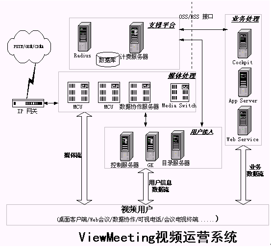 發(fā)展寬帶視頻業(yè)務(wù),提供寬帶視頻通信解決方案是優(yōu)視風(fēng)的宗旨,利用ViewMeeting平臺(如圖1所示),運(yùn)營企業(yè)可以制定針對不同用戶需求的不同視頻業(yè)務(wù),使視頻業(yè)務(wù)能夠普及到更廣的用戶范圍中。