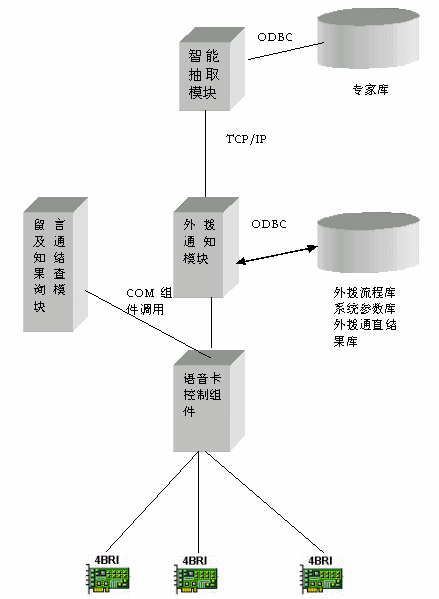 北京市建筑市場專家評標(biāo)抽取通知系統(tǒng)是靈訊科技有限公司采用加拿大Eicon網(wǎng)絡(luò)公司的Diva Server 4BRI 卡開發(fā)的一套高效的外撥通知系統(tǒng),該系統(tǒng)充分體現(xiàn)了Eicon網(wǎng)絡(luò)公司 Diva Server 4BRI卡強(qiáng)大的語音功能以及系統(tǒng)的穩(wěn)定性,準(zhǔn)確地識(shí)別了外撥手機(jī)的遇忙、無人、不再服務(wù)區(qū)、關(guān)機(jī)、空號等狀態(tài),實(shí)現(xiàn)了對手機(jī)狀態(tài)的全面監(jiān)控,全面解決了模擬語音卡對外撥手機(jī)信號無法判斷的問題。具體的系統(tǒng)架構(gòu)如下:![]()