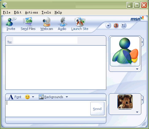 從聊天界面來看,兩者的類似更多。MSN Messenger 6.0在聊天界面比以前有了大幅改變,增加了聊天的兩者的頭像,并且可以方便的對自己的頭像進(jìn)行修改。同時還可以輕松的修改聊天界面的背景。同時可以通過上面的圖標(biāo)按鈕邀請他人參與,發(fā)送文件,視頻聊天等。QQ
