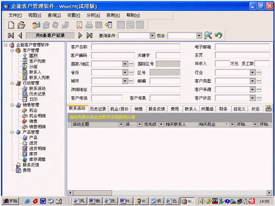 一、包括各種數(shù)據(jù)維護,如客戶靜態(tài)信息、活動信息,產品信息,銷售過程記錄、服務記錄、費用記錄、以及財務管理、知識管理等等。