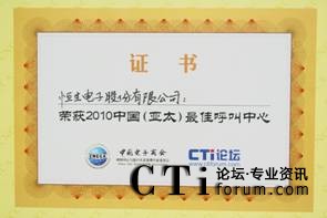 恒生通信榮獲中國(亞太)最佳呼叫中心大獎