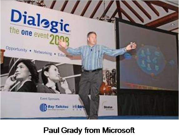 第二天上午,會(huì)議以Dialogic總裁兼CEO Nick Jensen強(qiáng)有力的演講開(kāi)始,隨后是Dialogic執(zhí)行副總裁兼COO Tim Murray和Dialogic市場(chǎng)高級(jí)副總裁Jim Machi。 面向整個(gè)宴會(huì)廳的與會(huì)者,全天的會(huì)議包括了來(lái)自Dialogic產(chǎn)品線(xiàn)總監(jiān)James Rafferty和Dialogic企業(yè)產(chǎn)品線(xiàn)市場(chǎng)經(jīng)理Bud Walder等內(nèi)部演講者,和來(lái)自Yankee Group, PT. Excelcomindo Pratama 和Microsoft等外部演講者們激動(dòng)人心的演講。會(huì)議結(jié)束時(shí),由我們的合作伙伴Bay Talkitec贊助,有三個(gè)幸運(yùn)贏家贏得了iPod touch 16G,iPod nano 8G和4G。