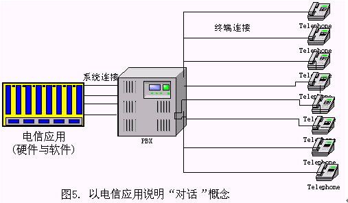 一般來(lái)說(shuō),一個(gè)基于電話語(yǔ)音識(shí)別的對(duì)話系統(tǒng)(如圖5所示),一般由識(shí)別服務(wù)器、應(yīng)用服務(wù)器、電話交換機(jī)、智能交換機(jī)設(shè)備、 IVR設(shè)備等設(shè)備組成,電話交換機(jī)與成千上萬(wàn)個(gè)電話終端通過(guò)各種交換設(shè)備相連接,電信應(yīng)用軟件在這些硬件的支持下提供各種服務(wù),如:1860查詢服務(wù)等。此時(shí),電信應(yīng)用開(kāi)通的線數(shù)視系統(tǒng)的業(yè)務(wù)需求而定,一般總是大大小于終端連接的總數(shù)。系統(tǒng)連接數(shù)與終端連接數(shù)常常是1:1000或者1:10000的級(jí)別。"一路對(duì)話"是指物理上的一條線路,對(duì)于上述的電信應(yīng)用,電信開(kāi)通的每一條線路都是一路對(duì)話。