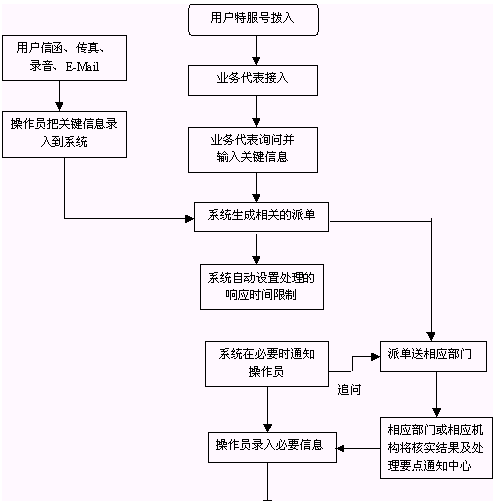 人民群眾打入電話后,當(dāng)系統(tǒng)的自動語音應(yīng)答子系統(tǒng)無法解決客戶問題時(shí),客戶可選擇人工服務(wù),由企業(yè)客戶服務(wù)代表直接接聽客戶電話,處理并解決客戶問題。此時(shí)客戶同座席話務(wù)人員直接溝通,并同時(shí)記錄下該客戶的聯(lián)系方式,將相關(guān)數(shù)據(jù)添加入系統(tǒng)數(shù)據(jù)庫;也可以在數(shù)據(jù)庫的支持下回答質(zhì)量監(jiān)督咨詢、投訴等。客戶也可以選擇自動語音服務(wù)方式,根據(jù)系統(tǒng)的語音提示輸入按鍵,選擇類別,將自己的投訴和建議以及自己的聯(lián)系方式信息以留言錄音的方式保存在系統(tǒng)中。系統(tǒng)同時(shí)還支持自動傳真方式,客戶可以通過傳真機(jī)進(jìn)入本系統(tǒng),通過按鍵選擇傳真方式,將自己的意見建議等的文本內(nèi)容傳真給系統(tǒng),系統(tǒng)自動接受并存入數(shù)據(jù)庫。