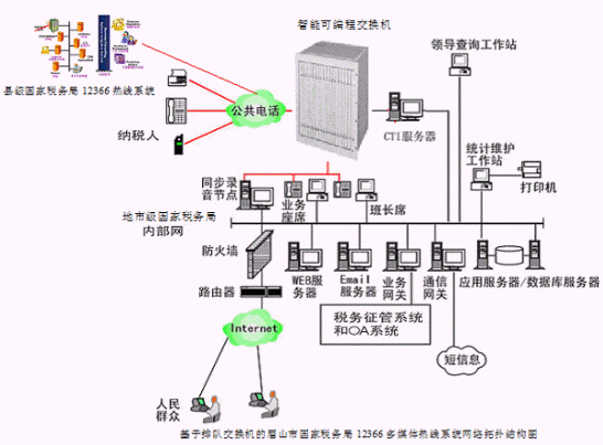 對于縣級國家稅務(wù)局12366多媒體納稅服務(wù)熱線系統(tǒng),則建議使用基于計算機語音板卡的方式,可以減少投資,同時具有良好的系統(tǒng)性能;對于地市級-縣級國家稅務(wù)局12366多媒體納稅服務(wù)熱線系統(tǒng),可選用排隊交換機作為語音接入設(shè)備,以保障系統(tǒng)的高可靠性和穩(wěn)定性;大大提高了系統(tǒng)的適應面。