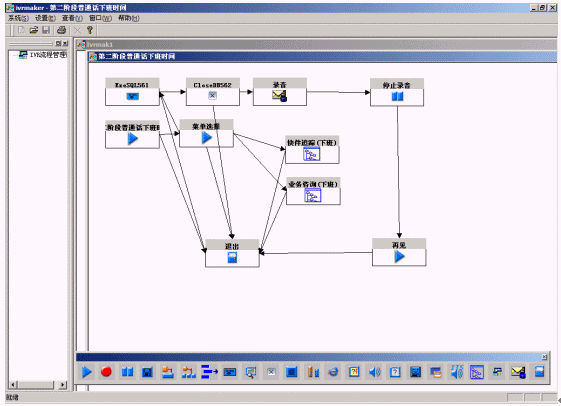 系統(tǒng)提供圖形化的語(yǔ)音流程生成環(huán)境,以方便用戶(hù)對(duì)語(yǔ)音流層進(jìn)行定制。流程生成器是一套可視化的流程設(shè)計(jì)工具,通過(guò)拖拉圖標(biāo)控件、鼠標(biāo)連線即實(shí)現(xiàn)呼叫中心CTI流程的制作,同時(shí),通過(guò)運(yùn)行時(shí)鏈接動(dòng)態(tài)連接庫(kù)(DLL),實(shí)現(xiàn)對(duì)業(yè)務(wù)數(shù)據(jù)庫(kù)的訪問(wèn);通過(guò)運(yùn)行時(shí)鏈接用戶(hù)DLL,最靈活地與用戶(hù)應(yīng)用系統(tǒng)結(jié)合;支持多種業(yè)務(wù)集成和動(dòng)態(tài)流程控制,方便用戶(hù)拓展業(yè)務(wù);采用事件驅(qū)動(dòng)機(jī)制、開(kāi)放的結(jié)構(gòu),滿足各種語(yǔ)音系統(tǒng)的需要;支持不限個(gè)數(shù)、級(jí)數(shù)的IVR結(jié)構(gòu),可滿足用戶(hù)非常復(fù)雜的需求。