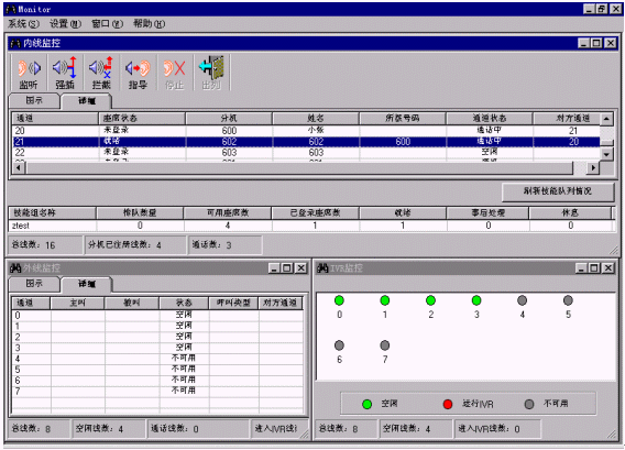 ·監(jiān)聽(tīng):班長(zhǎng)可監(jiān)聽(tīng)座席與客戶(hù)之間的通話,而座席與客戶(hù)雙方都不會(huì)察覺(jué)。
