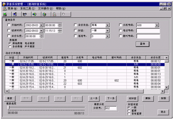對(duì)查詢(xún)出來(lái)的聲音文件,可以選定一個(gè)或多個(gè)通過(guò)電話或聲卡播放。