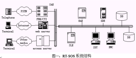 通過設計CTI程序, 實現(xiàn)電話交換設備(交換機、語音卡)和RT-SOS的通訊, 實現(xiàn)語音服務、人工坐席服務等。