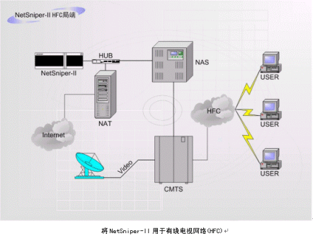 NetSniper-II也可以作為局端設備,用于xDSL(ADSL/VDSL)、PSTN(電話撥號網(wǎng)絡)、HFC(有線電視網(wǎng)絡)等。此時,NetSniper-II能夠有效的防止控制共享上網(wǎng)、盜用MAC地址上網(wǎng)和Modem回撥上網(wǎng)的情況發(fā)生。下面兩個圖例指出了如何將NetSniper-II用于局端。