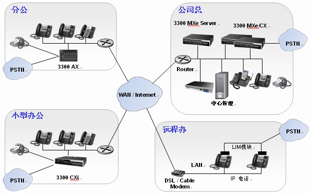 3300 CX 控制器:適用于分公司、分支機(jī)構(gòu)或小型辦公室。CX單機(jī)可支持150個設(shè)備,支持模擬中繼、數(shù)字中繼、IP中繼、模擬電話、IP 電話、 PC 話務(wù)臺等。 |