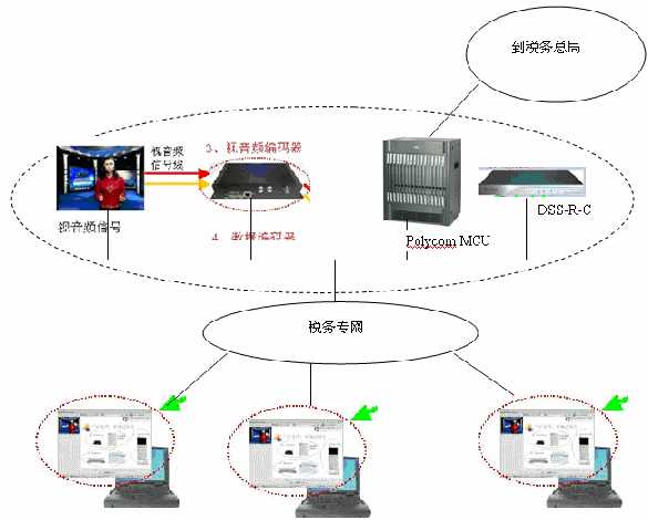 江西地稅組建了全省性的視頻會議網(wǎng)絡(luò),系統(tǒng)采用了Polycom的解決方案。會議網(wǎng)絡(luò)覆蓋到了縣一級的稅務(wù)機關(guān),但是由于投資和網(wǎng)絡(luò)條件的限制,無法實現(xiàn)全系統(tǒng)的覆蓋。在此情況下,深圳銳取軟件技術(shù)有限公司向江西地稅提供了流媒體的解決方案,以非常經(jīng)濟的方式把視頻會議系統(tǒng)延伸到了稅務(wù)系統(tǒng)內(nèi)的每一個桌面。而且它還解決了原有系統(tǒng)中會議過程的記錄問題,實現(xiàn)整個會議的聲音、視頻和數(shù)據(jù)的全程錄制,未與會人員可以隨時隨地登陸到服務(wù)器上點播和觀看會議過程。