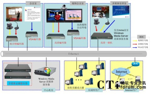 同時(shí)中糧集團(tuán)原有一臺(tái)Windows Media Server服務(wù)器,多媒體培訓(xùn)室內(nèi)的高清一體機(jī)在錄制的同時(shí)還發(fā)送mms流至Windows Media Server流媒體服務(wù)器,該服務(wù)器將培訓(xùn)室的實(shí)況視頻在互聯(lián)網(wǎng)上大規(guī)模直播、點(diǎn)播。
