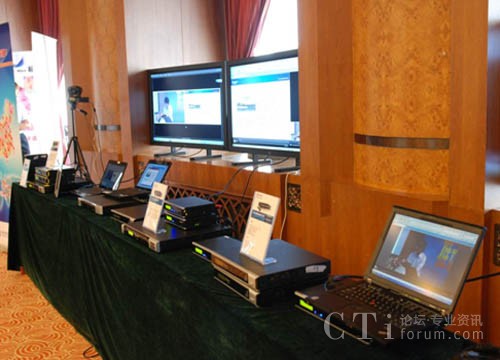 會場內(nèi)部搭建了產(chǎn)品展示區(qū),用4臺46寸顯示器,分別顯示分布式錄播系統(tǒng)(Beyonsys、powolive)平臺,Beyonsys導播平臺,接收導播后直播畫面;另用ipad接收直播,展示了桌面一體機、模塊化一體機、解碼器等相關產(chǎn)品。