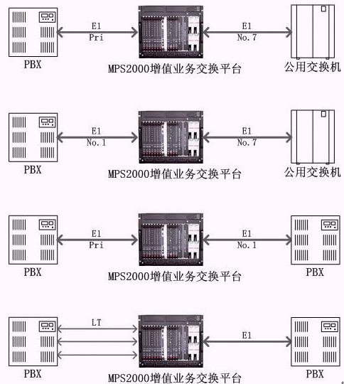 MPS2000-SG信令網(wǎng)關(guān)以MPS2000增值業(yè)務(wù)交換平臺為核心,配置支持不同信令的數(shù)字中繼板即可實(shí)現(xiàn)信令轉(zhuǎn)換的功能。