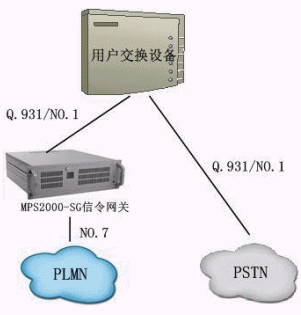 用戶在原有交換設(shè)備上增加數(shù)字中繼,保留原有的數(shù)字中繼與PSTN的對(duì)接,新增的數(shù)字中繼通過交換設(shè)備自帶的信令(Q.931/NO.1)與信令網(wǎng)關(guān)對(duì)接,再通過信令網(wǎng)關(guān)以NO.7接入PLMN。