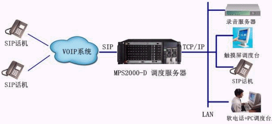 由于MPS2000-D調(diào)度系統(tǒng)本身具有具大的軟交換功能,所以調(diào)度系統(tǒng)既可以與企業(yè)已建成的VOIP系統(tǒng)相連,對(duì)VOIP管理的終端進(jìn)行調(diào)度,又可以對(duì)自己管理的用戶(hù)進(jìn)行調(diào)度。系統(tǒng)豐富的資源使其除了具有基本調(diào)度功能外,還具有強(qiáng)大的會(huì)議功能,可以實(shí)現(xiàn)從3方到幾十、幾百方的全交互會(huì)議;還可對(duì)調(diào)度過(guò)程自動(dòng)進(jìn)行錄音備份;使每個(gè)分機(jī)都具有語(yǔ)音信箱功能;TTS資源的引入,可將文本文件變成語(yǔ)音,使所有調(diào)度成員可以聽(tīng)文件;ASR資源的引入,改變了以往通過(guò)按鍵撥號(hào)進(jìn)行調(diào)度的形式,可直接通過(guò)語(yǔ)音呼叫進(jìn)行調(diào)度,使調(diào)度變得更方便、更快捷。