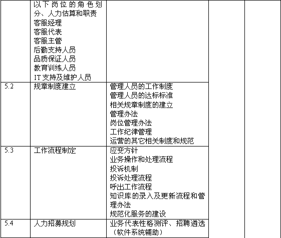 6.提出了未來客戶滿意度、分流柜面比率、產(chǎn)品促銷量等方面的量化比率;針對客服中心的主要業(yè)務(wù)提供量化的目標,并提出達成目標的前提條件;對未來人員和系統(tǒng)規(guī)模提供量化預(yù)估。