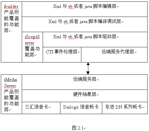 如圖2.1所述,ibuilder產(chǎn)品覆蓋了腳本編輯、編譯調(diào)試、腳本驅(qū)動、遠端服務(wù)代理的功能,占據(jù)了IVR業(yè)務(wù)系統(tǒng)重要的一部分。