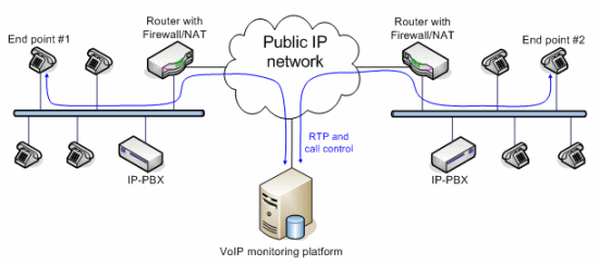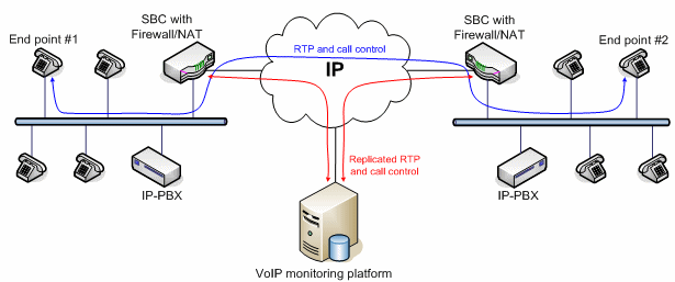 VoIP應(yīng)用的質(zhì)量監(jiān)控分為主動式和被動式兩種實現(xiàn)方式。主動式的系統(tǒng)能產(chǎn)生呼叫,而被動式的系統(tǒng)只是監(jiān)測進(jìn)行中的呼叫。兩種方法各有優(yōu)勢。VoIP監(jiān)控方案的架構(gòu)取決于網(wǎng)絡(luò)Edge設(shè)備的類型和結(jié)構(gòu)。有些大型企業(yè)采用的VoIP網(wǎng)絡(luò)配備了一種特殊設(shè)備,叫SBC(Session boarder controller),除了完成類似路由器的功能外,還能完成流量分配、數(shù)據(jù)/語音信號加密以及業(yè)務(wù)質(zhì)量控制等功能。此外,通過過濾和替換數(shù)據(jù)包內(nèi)的、與用戶有關(guān)的特定信息,SBC還能隱藏公司的網(wǎng)絡(luò)拓?fù)浣Y(jié)構(gòu)和用戶信息,不被外部的IP世界所知道。