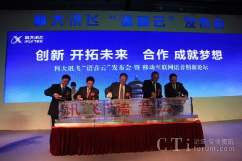 CTI論壇(ctiforum)10月29日消息(記者 潘婷婷): 2010年10月28日,“科大訊飛‘語音云’發(fā)布會(huì)暨移動(dòng)互聯(lián)網(wǎng)語音創(chuàng)新論壇”在北京香格里拉飯店隆重舉行?拼笥嶏w作為中國(guó)語音產(chǎn)業(yè)領(lǐng)導(dǎo)者,在業(yè)界率先推出“訊飛語音云”,對(duì)于促進(jìn)國(guó)家新近確定的七大戰(zhàn)略新興產(chǎn)業(yè)之一的“新一代信息技術(shù)”發(fā)展具有重大意義,將推動(dòng)移動(dòng)互聯(lián)網(wǎng)邁入語音時(shí)代,創(chuàng)新無限豐富的應(yīng)用、創(chuàng)造廣闊的市場(chǎng)藍(lán)海。因此,此次發(fā)布會(huì)得到了各界的高度關(guān)注,各相關(guān)政府部門領(lǐng)導(dǎo),聯(lián)想、騰訊、愛國(guó)者、優(yōu)視科技、播思通訊等各行業(yè)及移動(dòng)互聯(lián)網(wǎng)領(lǐng)軍企業(yè)的代表,媒體界朋友,匯聚一堂、共襄盛舉,并就移動(dòng)互聯(lián)網(wǎng)與語音產(chǎn)業(yè)的相互融合、創(chuàng)新發(fā)展、合力共贏進(jìn)行了深入熱烈的探討。