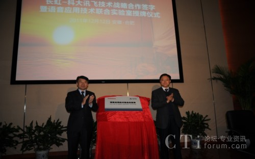 CTI論壇(ctiforum)12月14消息(記者 潘婷婷): 12月12日,科大訊飛與長虹集團戰(zhàn)略合作簽約暨共建聯(lián)合實驗室揭牌儀式在科大訊飛語音產(chǎn)業(yè)基地研發(fā)大樓隆重舉行。根據(jù)合作框架協(xié)議,雙方將在戰(zhàn)略聯(lián)盟的基礎上,以共建聯(lián)合實驗室為主要載體,旨在依托各自行業(yè)領域的長期積淀優(yōu)勢、強強聯(lián)合,達成戰(zhàn)略互信,加強緊密合作,積極推動“語音核心引擎+智能終端平臺” 的特色應用模式,深入拓展智能語音科技在智能電視等終端產(chǎn)品市場的應用范圍,合力開創(chuàng)智能語音終端創(chuàng)新應用市場空間。