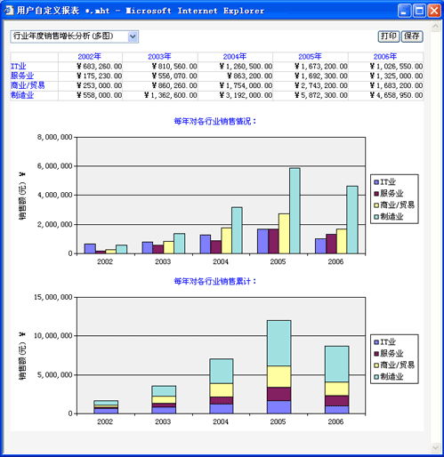 用戶有N個(gè)理由,要求CRM客戶關(guān)系管理系統(tǒng)輸出的報(bào)表(Report)可以嵌入圖表(Chart),就像下圖示例一樣,一方面用數(shù)據(jù)精確地展現(xiàn)統(tǒng)計(jì)分析結(jié)果,另一方面用圖形直觀地進(jìn)行表達(dá)。