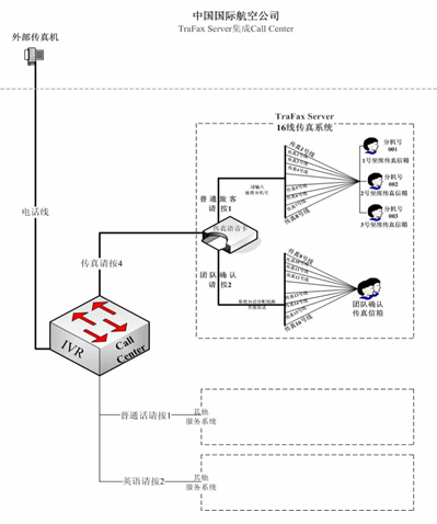 8月, 中國國際航空股份有限公司Call Center與北京拓敏TraFax Server傳真服務器的系統(tǒng)集成工作順利完成。由此,國航的信息化建設工作再次向前邁出了一大步,國航的辦事效率、服務水平以及市場競爭力等也都跟著上了一個新臺階。