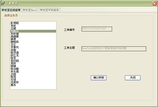 3) 工作流閉環(huán)、客戶通話歷史,客戶聯(lián)系歷史,工單流轉(zhuǎn):工作流系統(tǒng)是通過工單實(shí)現(xiàn)各工作流環(huán)節(jié)的聯(lián)系以及工作流的定義管理,工作流狀態(tài)查詢、更改的。操作員可根據(jù)用戶的不同業(yè)務(wù)請求,建立相應(yīng)的工單記錄,并對該事后處理過程進(jìn)行跟蹤;也可對要處理的事務(wù)形成工單轉(zhuǎn)給相應(yīng)的操作員,并跟蹤該工單的處理過程;可定期提示操作員處理要過期的工單,以提高服務(wù)質(zhì)量;每次處理過程都會(huì)有詳細(xì)的記錄,以便統(tǒng)計(jì)查詢 。如圖8、9、10: