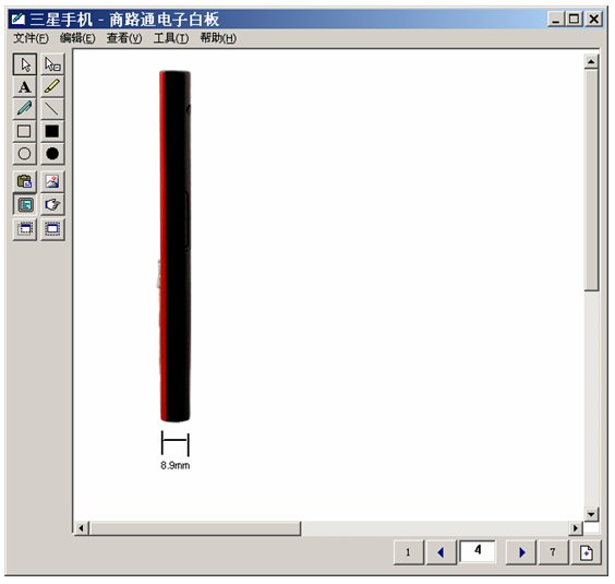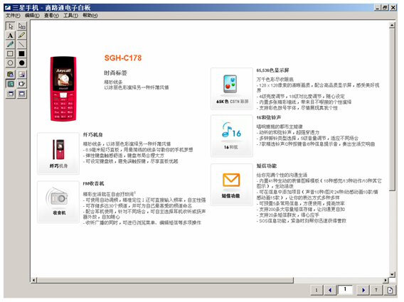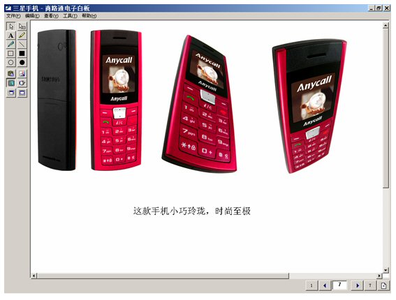 坐席進(jìn)入富媒體知識庫,調(diào)出三星手機(jī),啟動電子白板,將這個畫面推送給客戶。